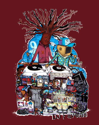 DJ FAVELAS Tee-shirt 190g impression flex coloris bordeaux Série limitée