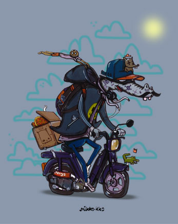 PIZZA MAN Tee-shirt 190g impression directe en jet d'encre coloris gris Série limitée