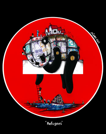 REFUGEES Tee-shirt 190g impression directe en jet d'encre coloris noir Série limitée
